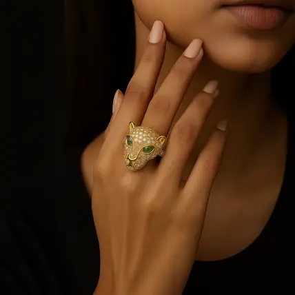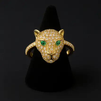 Emerald-Eyed-Panther-Ring-–-18K-Gold-Plated-with-Pave-Crystals